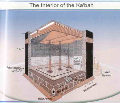 * درب کعبه: دروازه کعبه در دوران ابراهیم دو درگاه بدون در همسطح زمین برای کعبه گشوده شد. در دوران جوانی محمد، قریش در هنگام بازسازی کعبه برای نخستین بار از درب چوبی در محل فعلی که بالاتر از زمین قرار دارد استفاده کردند.